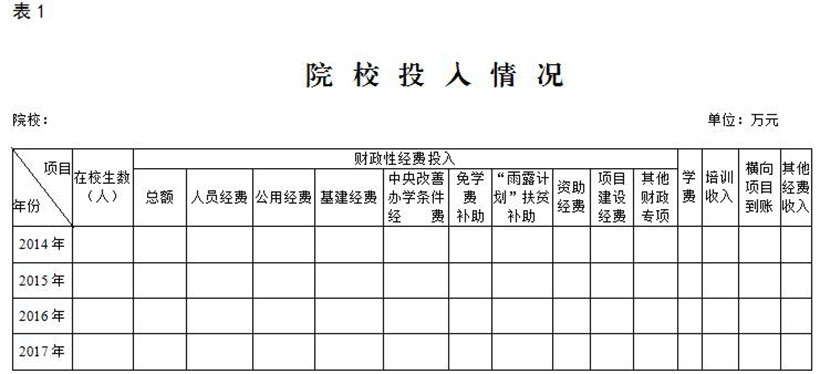 表1:院校投入情況