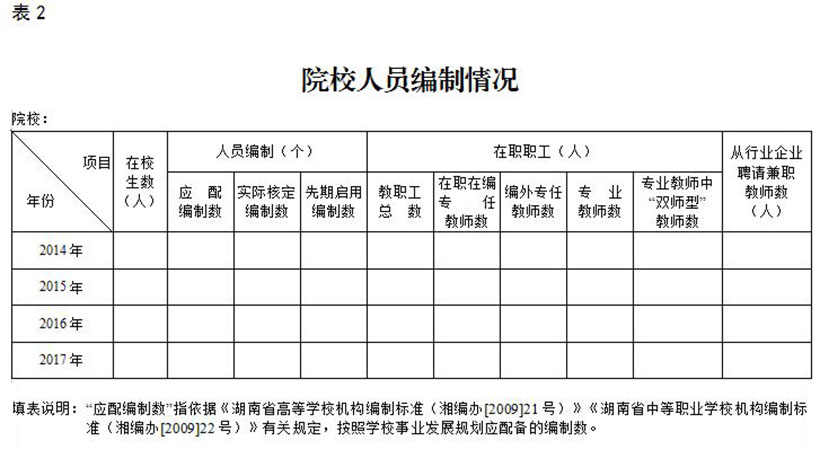 表2:院校人員編制情況